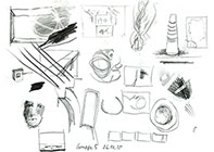 Trockentechnik I: Bleistift, Radiergummi und -Schablone auf Papier